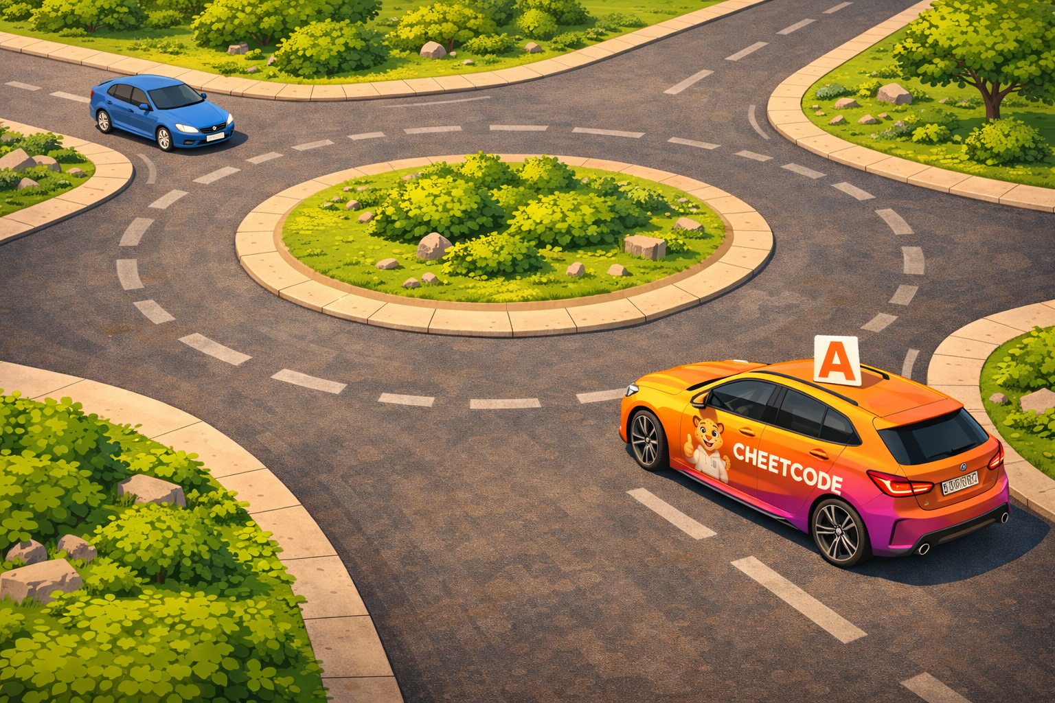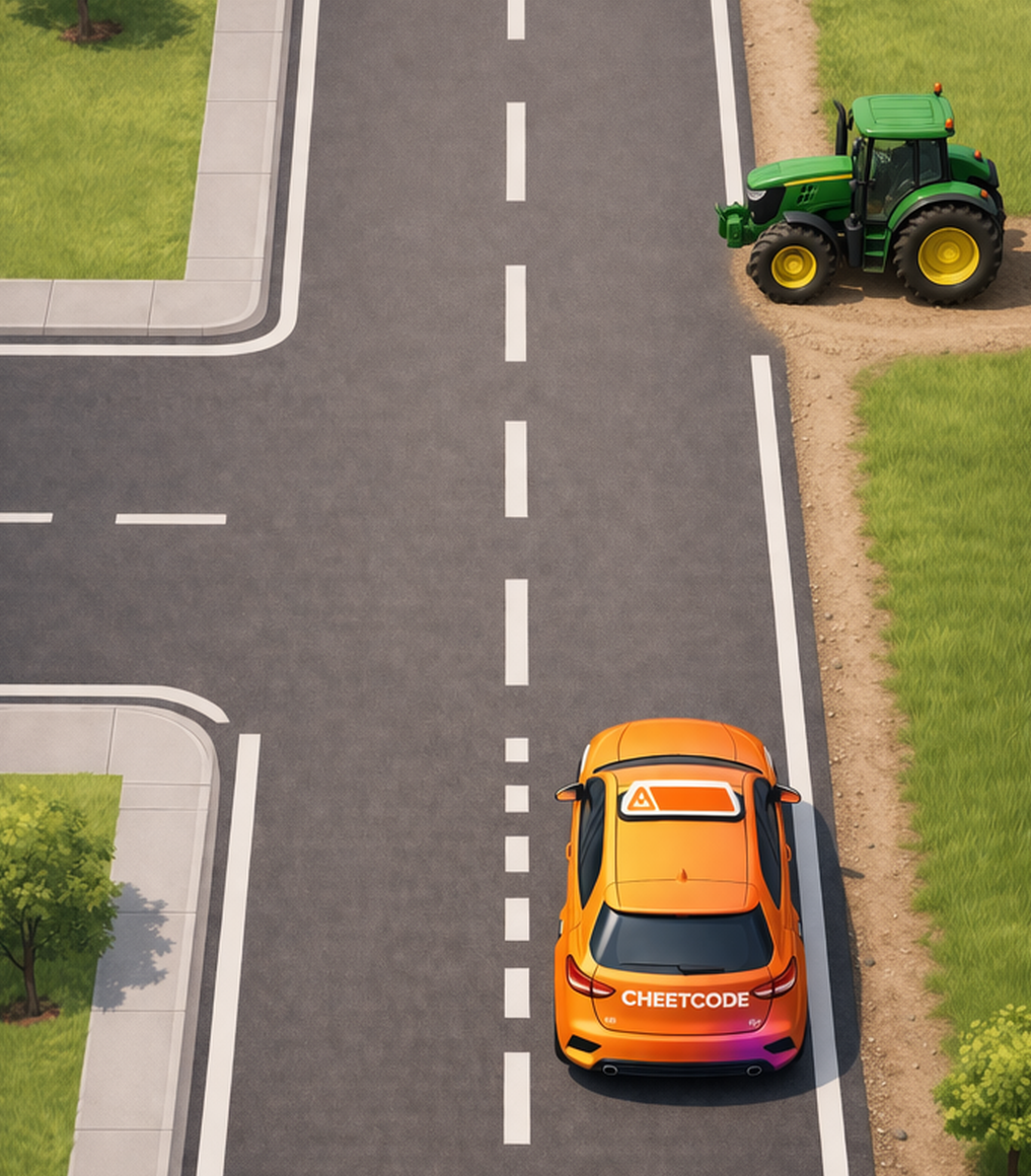Sur l’image, C’est la voiture orange ‘Cheetcode’ qui doit céder la priorité.